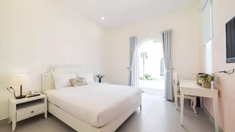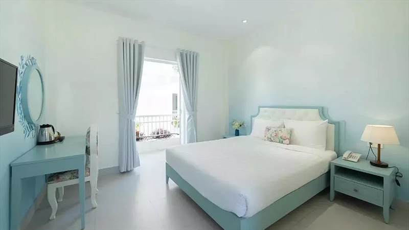 Phòng Decharme 3: 1 số phòng có cửa sổ nhỏ- hường vườn hoặc ban công - hướng vườn. Loại giường: 1 Giường 1m6. Loại phòng này có 2 giường 1m6- giá 4 khách nhưng số lượng phòng ít ks k đăng bán. Nếu ks tư vấn phòng này Sales check giá với team Product