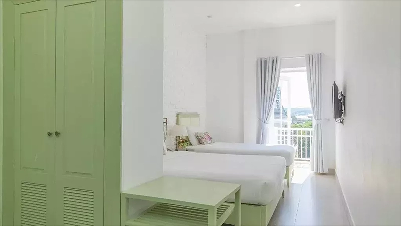 Phòng Decharme 2: 1 số phòng có cửa sổ nhỏ- hường vườn hoặc hướng ban công - hướng vườn. Loại giường: 1 Giường 1m + 1G1m4