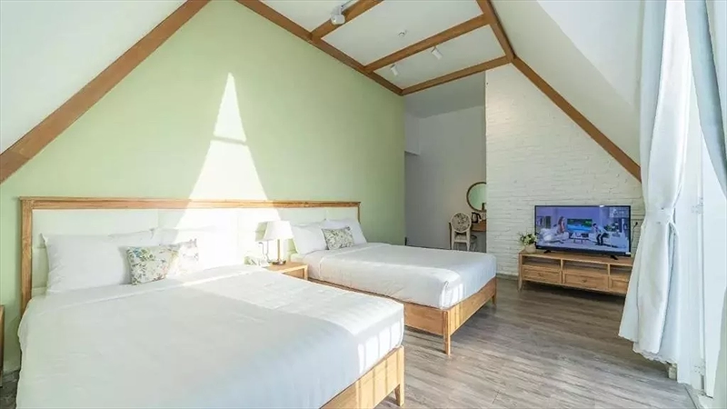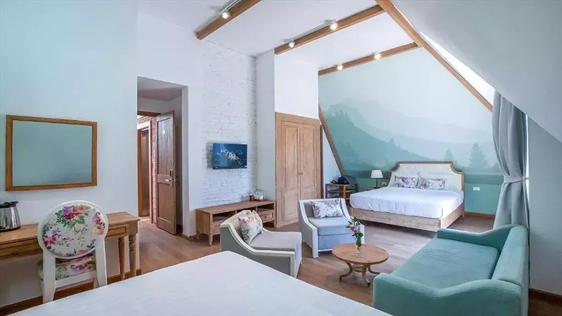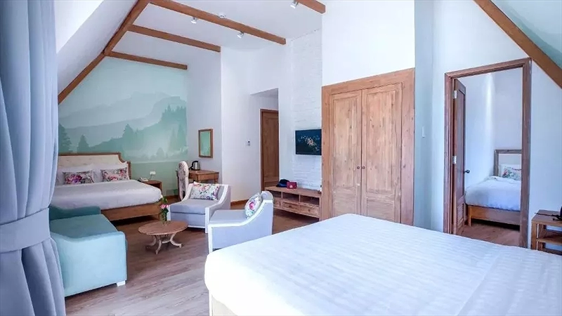 Phòng Decharme 2: 1 số phòng có ban công hướng núi hoặc phòng áp mái (Rooftops )hường vườn. Loại giường:Giường 1m + 1G1m4