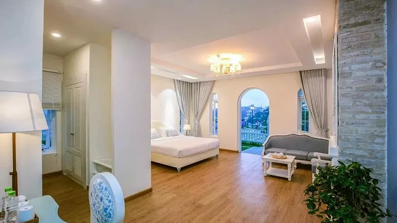 Phòng Decharme 5 ( 2 khách & 4 khách): Premium Suite - Private garden - k ban công/ Premium Rooftops Sky view. Loại giường: 1 Giường đôi - 2m2m2 hoặc 2 giường 1m6- 4 khách