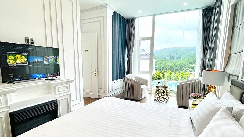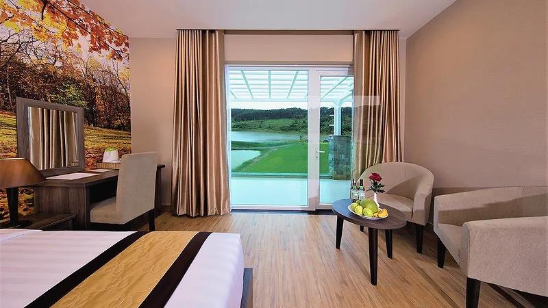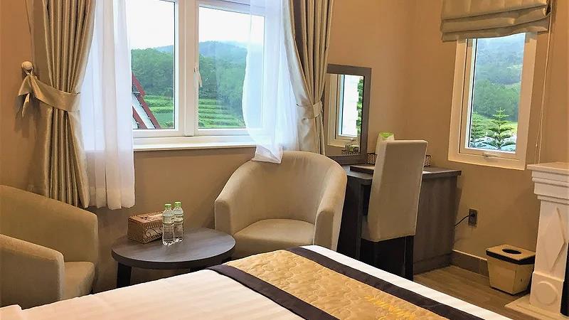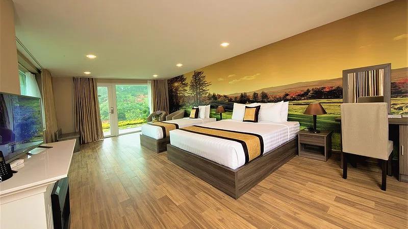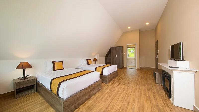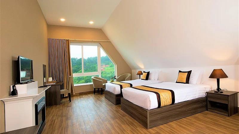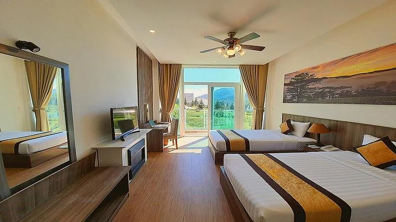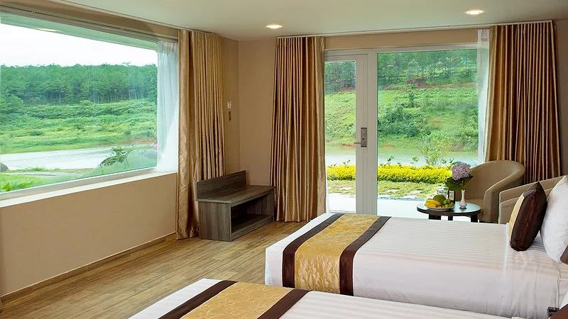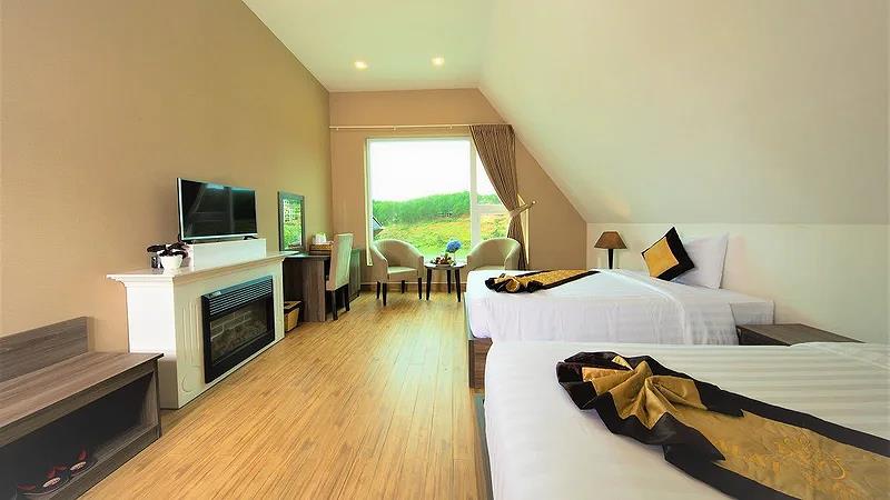 Villa 4 Luxury: 4 căn, 2 căn có 4 twin, 2 căn còn lại có 2 twin & 2 double có ban công, có bồn tắm, có máy lạnh, khu đồi trên cao, tầng G hướng vướn, tầng trên hướng hồ, diện tích phòng 50 m2,
