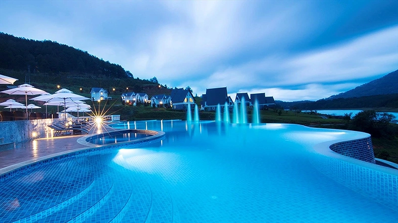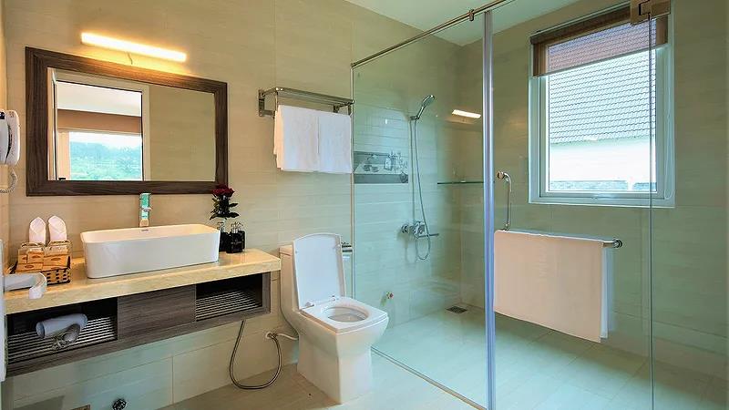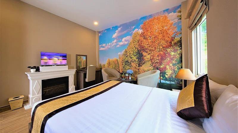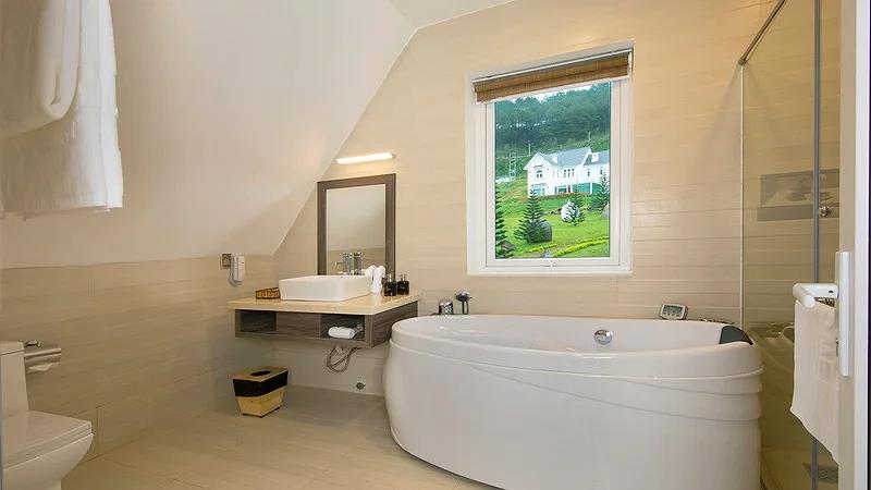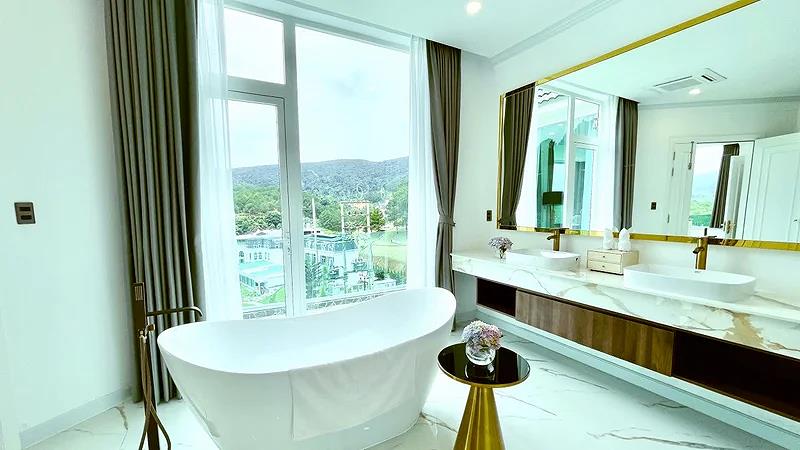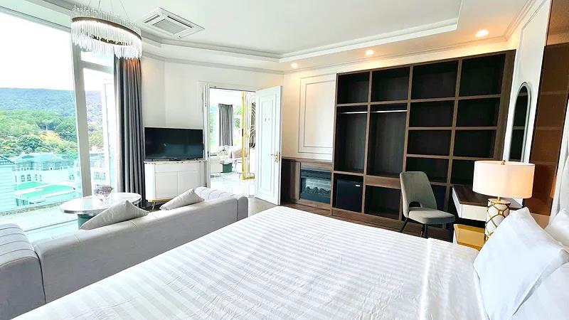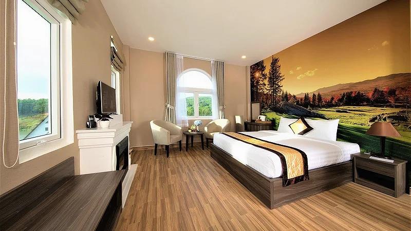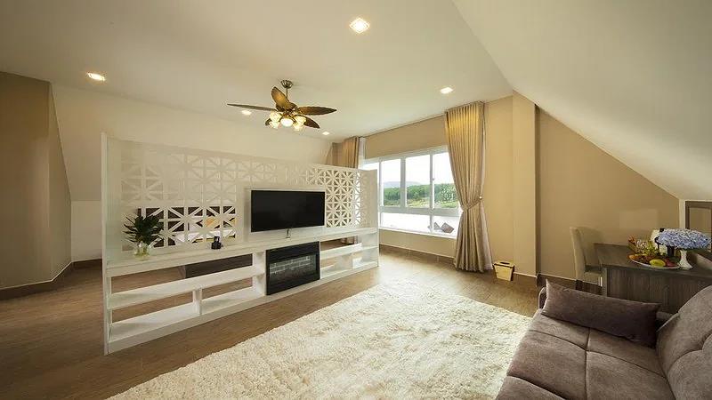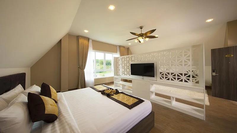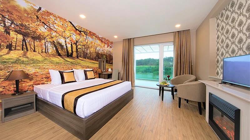 Villa 4 Luxury: 4 căn, 2 căn có 4 twin, 2 căn còn lại có 2 twin & 2 double có ban công, có bồn tắm, có máy lạnh, khu đồi trên cao, tầng G hướng vướn, tầng trên hướng hồ, diện tích phòng 50 m2,