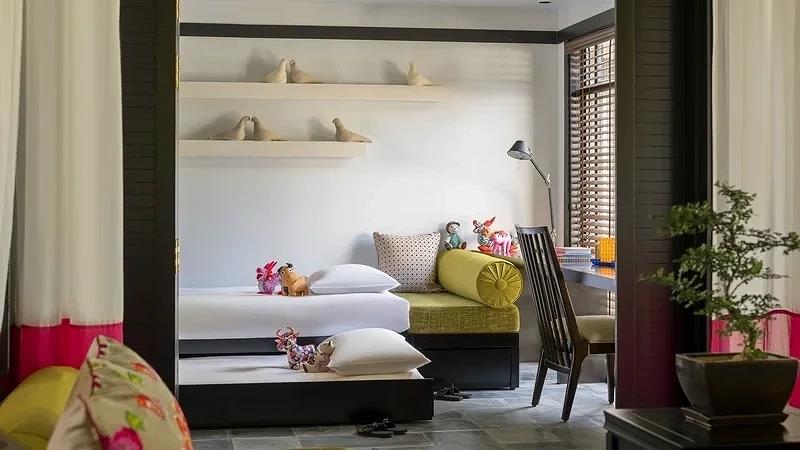 Family Villa: ( 1 giường lớn, và 1 trundle bed kiểu giường twin, có 1 giường nhỏ dính nhau, search google có ảnh)