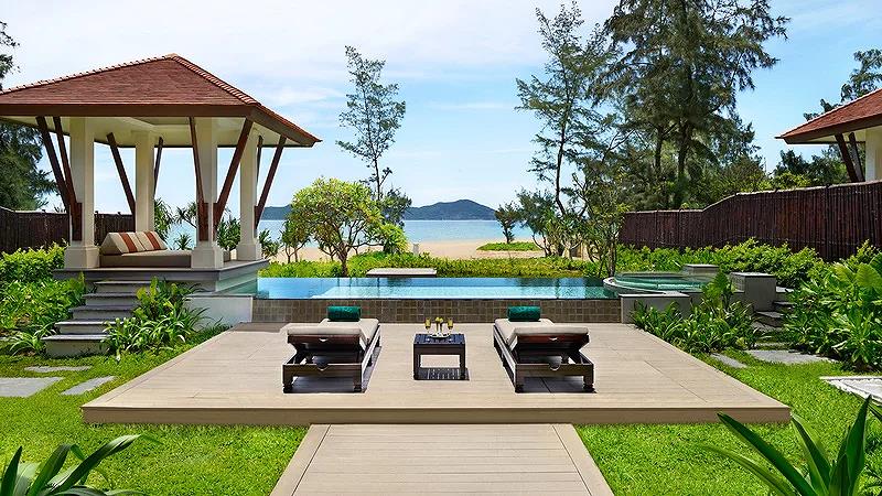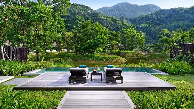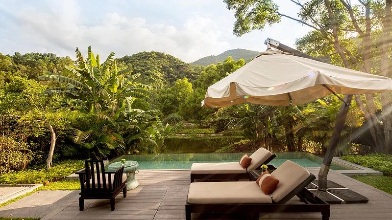 Và hồ bơi riêng nhìn ra đầm phá cùng núi rừng