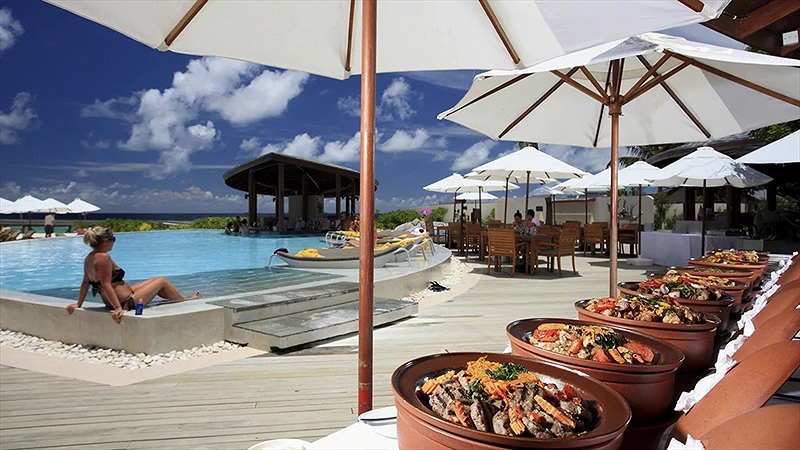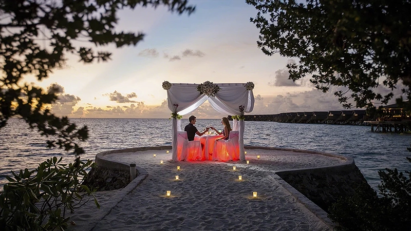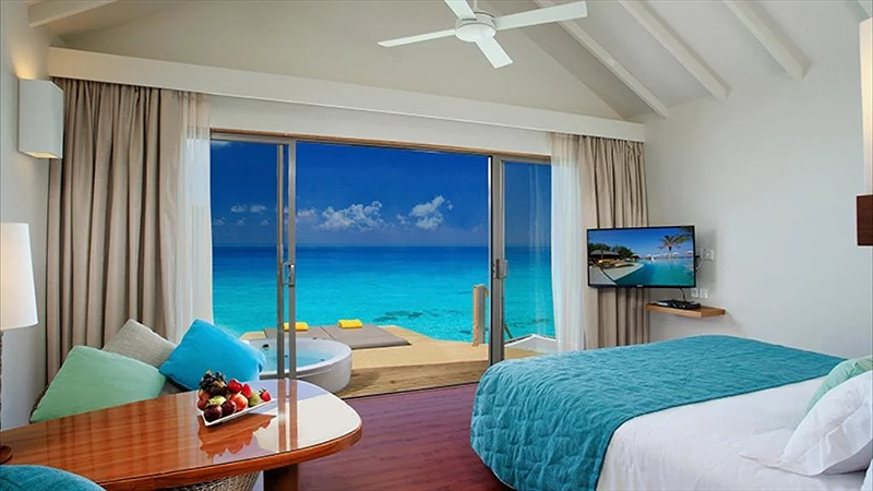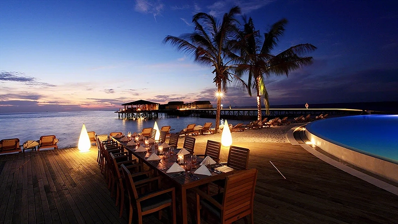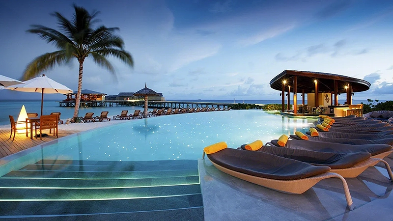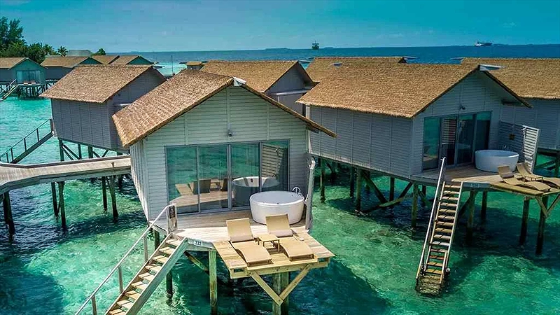 - 5N4Đ: Bay đến buổi tối/sáng và di chuyển thẳng đến Resort cao cấp lưu trú 2 đêm villa trên bờ và 2 đêm villa trên biển