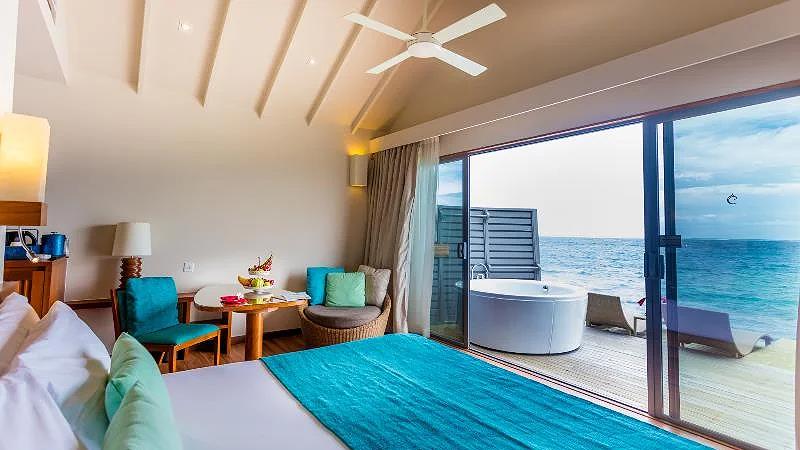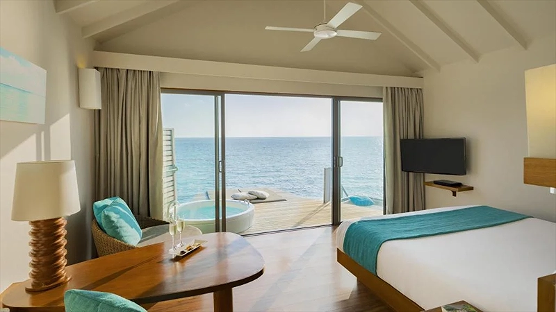 - Beach Villa + Deluxe Beach Villa: trên mặt đất | Overwater: trên mặt biển