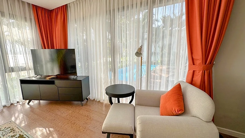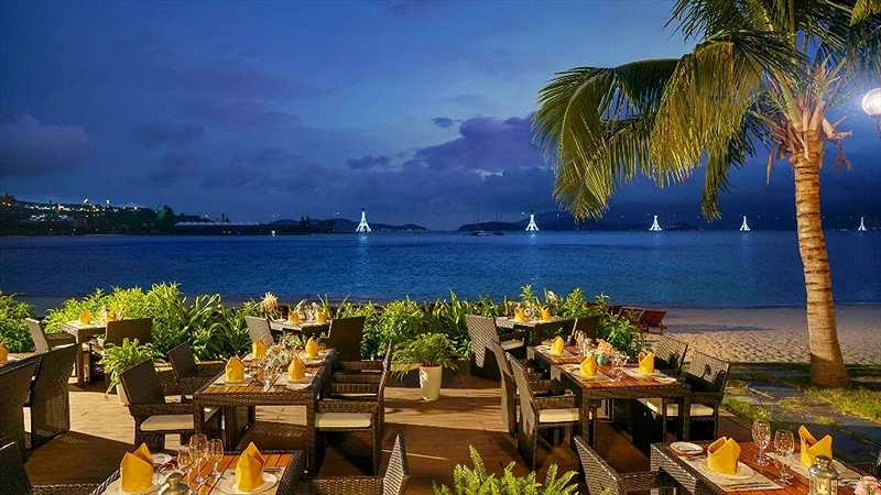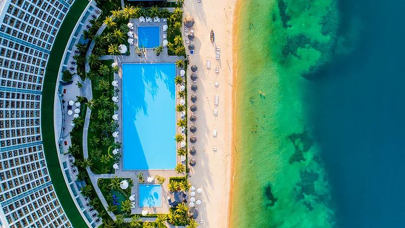 - Nếu Quý khách lựa chọn đi cáp treo sang đảo Hòn Tre, sau khi xuống cáp treo Quý khách vui lòng đi bộ ngược về phía bến tàu (khoảng 200m) để sử dụng dịch vụ xe điện đưa Quý khách về khách sạn