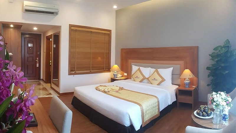 Bữa ăn: Khách có thể thưởng thức món ăn mang phong cách quốc tế tại Hoa Mai, một trong 2 nhà hàng của khách sạn hoặc nghỉ lại trong phòng và thưởng thức những bữa ăn ngon với dịch vụ phòng (có giới hạn thời gian). Thư giãn sau một ngày dài bên cạnh ly đồ uống yêu thích tại quầy bar/khu lounge. Khách có thể dùng bữa sáng buffet miễn phí hàng ngày từ 06:00 đến 09:00.